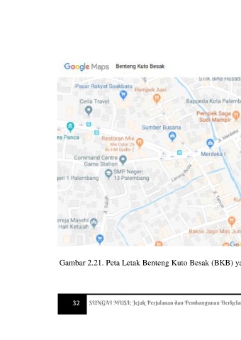 Gambar 2.21. Peta Letak Benteng Kuto Besak (BKB) yang menghadap ke sungai musi. (Sumber : Google Map)