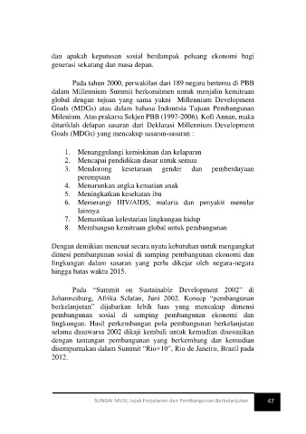 Goals (MDGs) atau dalam bahasa Indonesia Tujuan Pembangunan