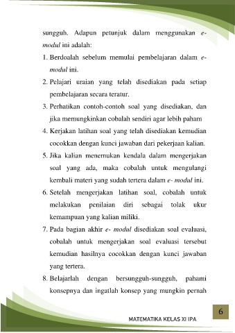 7. Pada bagian akhir e- modul disediakan soal evaluasi,
