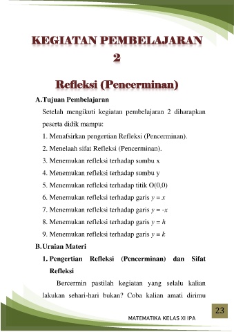1. Menafsirkan pengertian Refleksi (Pencerminan).