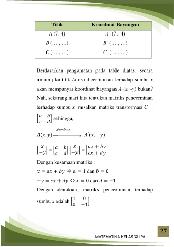 akan mempunyai koordinat bayangan A’(x, -y) bukan?