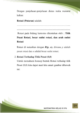 Rotasi pada bidang kartesius ditentukan oleh ; Titik