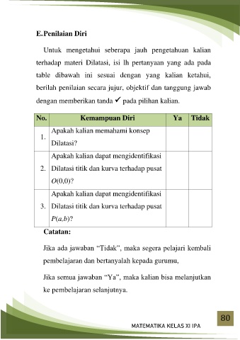 terhadap materi Dilatasi, isi lh pertanyaan yang ada pada