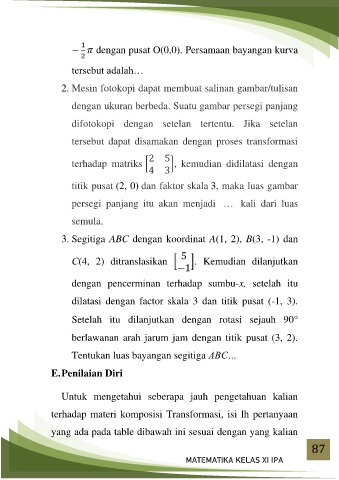 terhadap materi komposisi Transformasi, isi lh pertanyaan