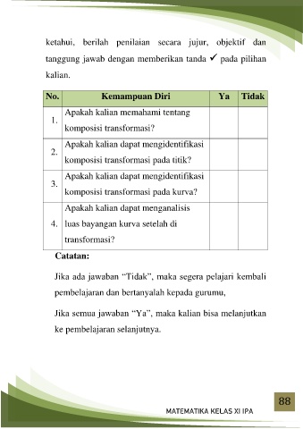 Jika ada jawaban “Tidak”, maka segera pelajari kembali
