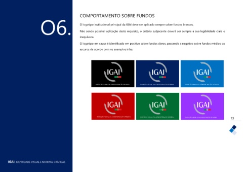 O6. O logotipo institucional principal da IGAI deve ser aplicado sempre sobre fundos brancos.