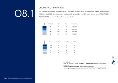 O8.1 Esta tipologia de códigos cromáticos é para ser usada exclusivamente em layouts de CAPAS, SEPARADORES,