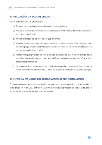 funcionamento da Biblioteca IGAI e/ou na ausência pontual dos seus técnicos(as).