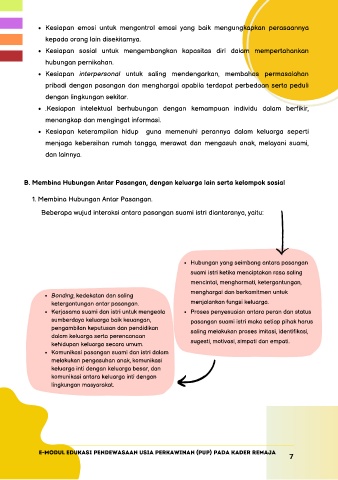 B. Membina Hubungan Antar Pasangan, dengan keluarga lain serta kelompok sosial