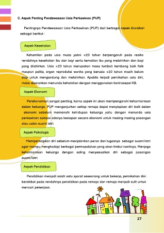 C. Aspek Penting Pendewasaan Usia Perkawinan (PUP)
