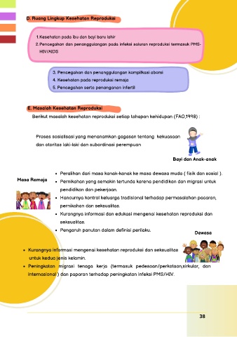 Berikut masalah kesehatan reproduksi setiap tahapan kehidupan (FAO,1998) :