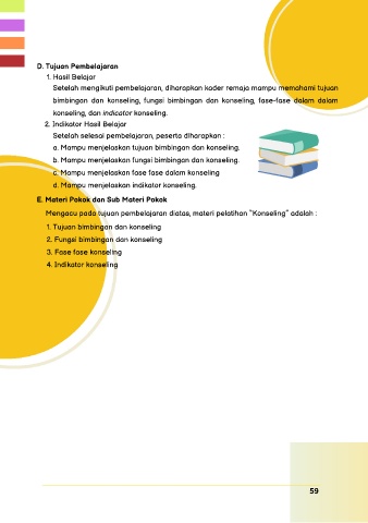 Mengacu pada tujuan pembelajaran diatas, materi pelatihan “Konseling” adalah :