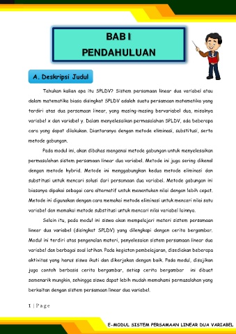 linear dua variabel (disingkat SPLDV) yang dilengkapi dengan cerita bergambar.