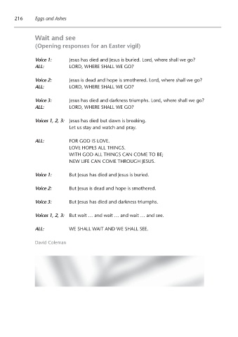 Voices 1, 2, 3: Jesus has died but dawn is breaking.