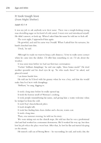 when he came into the shelter. I’d offer him something to eat. I’d ask about the