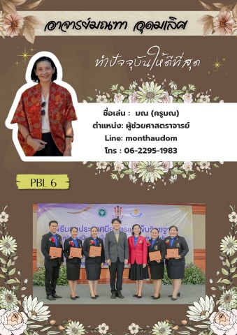 ทําป ััจจุบันให้ดีที่สุด ทําปจจบันใหดที่สุด ุ ี ้ ่ ู ื ช อเลน : มณ (ครมณ) ่ ู้ ่ ตําแหนง: ผชวยศาสตราจารย ์ Line: monthaudom โทร : 06-2295-1983 PBL 6