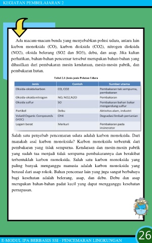 (NO2), oksida belerang (SO2 dan SO3), debu, dan asap. Jika kalian