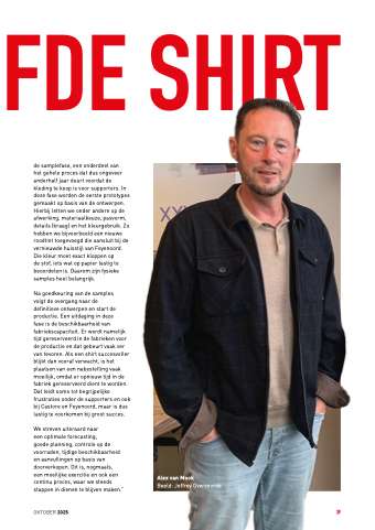 fase is de beschikbaarheid van fabriekscapaciteit. Er wordt namelijk tijd gereserveerd in de fabrieken voor de productie en dat gebeurt vaak ver van tevoren. Als een shirt succesvoller blijkt dan vooraf verwacht, is het plaatsen van een nabestelling vaak moeilijk, omdat er opnieuw tijd in de fabriek gereserveerd dient te worden. Dat leidt soms tot begrijpelijke frustraties onder de supporters en ook bij Castore en Feyenoord, maar is dus lastig te voorkomen bij groot succes.