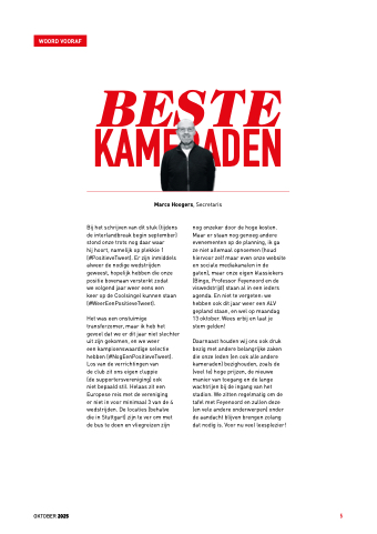 Daarnaast houden wij ons ook druk bezig met andere belangrijke zaken die onze leden (en ook alle andere kameraden) bezighouden, zoals de (veel te) hoge prijzen, de nieuwe manier van toegang en de lange wachtrijen bij de ingang van het stadion. We zitten regelmatig om de tafel met Feyenoord en zullen deze (en vele andere onderwerpen) onder de aandacht blijven brengen zolang dat nodig is. Voor nu veel leesplezier!