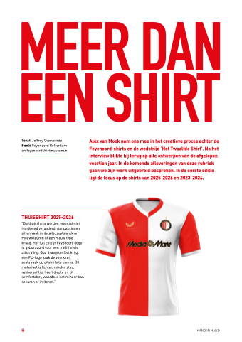 Alex van Mook nam ons mee in het creatieve proces achter de Feyenoord-shirts en de wedstrijd ‘Het Twaalfde Shirt’. Na het interview blikte hij terug op alle ontwerpen van de afgelopen veertien jaar. In de komende afleveringen van deze rubriek gaan we zijn werk uitgebreid bespreken. In de eerste editie ligt de focus op de shirts van 2025-2026 en 2023-2024.