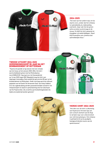 TWEEDE UITSHIRT 2024-2025 HERDENKINGSSHIRT 85 JAAR NA HET BOMBARDEMENT OP ROTTERDAM “Feyenoord speelde vorig seizoen met een remake van het tenue uit het seizoen 2003-2004. Het shirt werd ontwikkeld samen met het Rotterdamse
