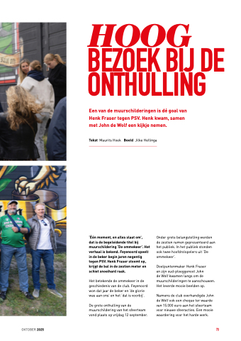 Een van de muurschilderingen is dé goal van Henk Fraser tegen PSV. Henk kwam, samen met John de Wolf een kijkje nemen.
