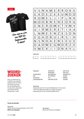 9 oktober naar puzzel@ defeijenoorder.nl! Onder de winnaars verloten