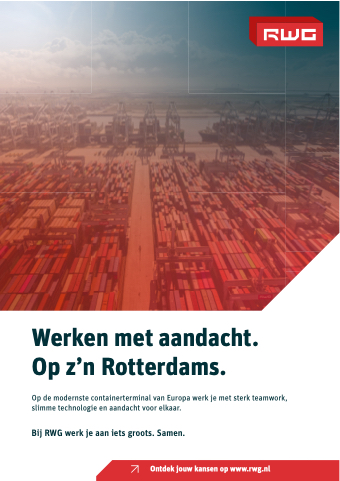 Werken met aandacht. Op z’n Rotterdams. Op de modernste containerterminal van Europa werk je met sterk teamwork, slimme technologie en aandacht voor elkaar. Bij RWG werk je aan iets groots. Samen. Ontdek jouw kansen op www.rwg.nl