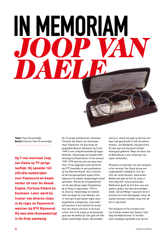 Op 7 mei overleed Joop van Daele op 77-jarige leeftijd. Hij speelde 163 officiële wedstrijden