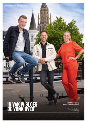 Van links naar rechts: Bas Timmermans, Erwin Grootenboer en Mirjam Fris IN VAK W SLOEG DE VONK OVER’ Tekst Debora Plomp Beeld Vincent van Dordrecht Erwin Grootenboer Jouwfactoring