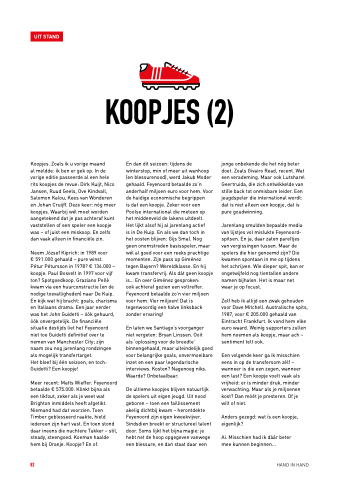 al meldde: ik ben er gek op. In de vorige editie passeerde al een hele rits koopjes de revue: Dirk Kuijt, Nico Jansen, Ruud Geels, Ove Kindvall, Salomon Kalou, Kees van Wonderen en Johan Cruijff. Deze keer: nóg meer koopjes. Waarbij wél moet worden aangetekend dat je pas achteraf kunt vaststellen of een speler een koopje was – of juist een miskoop. En zelfs dan vaak alleen in financiële zin.