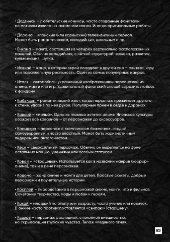 • Арка – часть сюжета в аниме или манге, объединённая одной   • Дорама – японский (или корейский) телевизионный сериал.