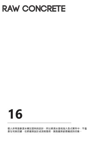 raw concrete 16 個人非常喜歡清水模加塗料的設計,所以將清水風格加入各式案件中,不僅 是住宅與店舖,也將廠房設計成清模風格,跳脫廠房都是鐵皮的印象。