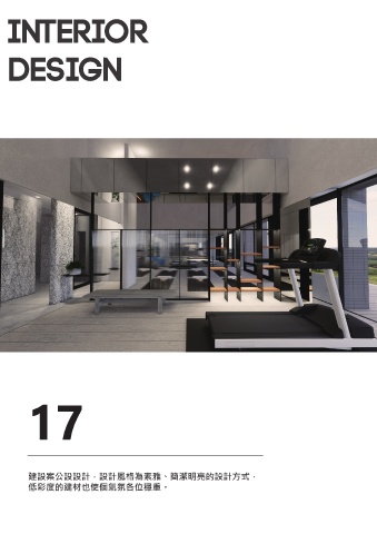 interior design 17 建設案公設設計,設計風格為素雅、簡潔明亮的設計方式, 低彩度的建材也使個氣氛各位穩重。