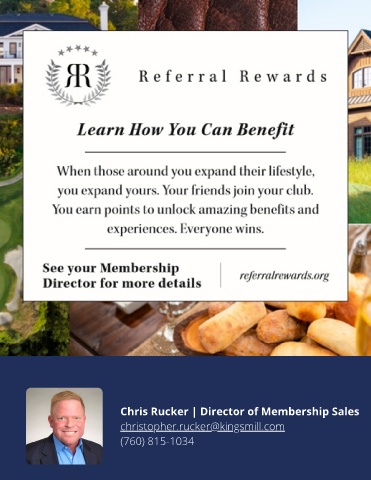 Chris Rucker | Director of Membership Sales christopher.rucker@kingsmill.com (760) 815-1034
