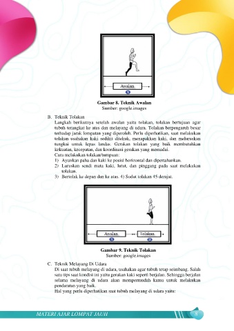 3)  Bertolak ke depan dan ke atas. 4) Sudut tolakan 45 derajat.