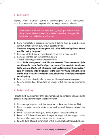 3. Peserta didik menyimak guru mengucapkan tanggal dan bulan.