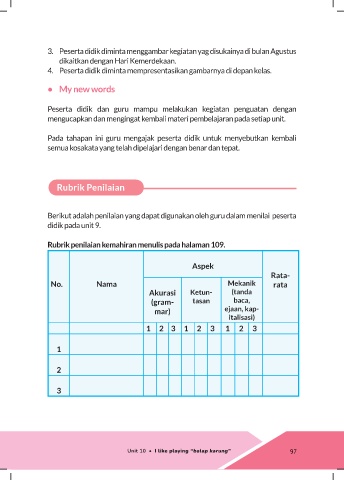 Rubrik penilaian kemahiran menulis pada halaman 109.