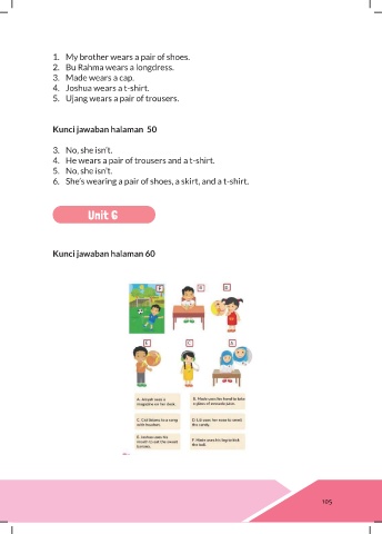 6. She’s wearing a pair of shoes, a skirt, and a t-shirt.