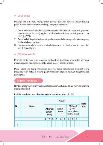 Rubrik penilaian kemahiran menulis pada halaman 18 - 19