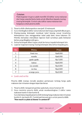 2. Guru membagikan daftar nama makanan dan harga yang telah dibuat guru.