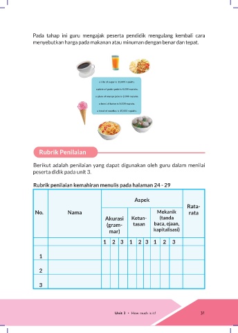 menyebutkan harga pada makanan atau minuman dengan benar dan tepat.