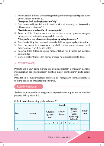 2. Guru memberi instruksi untuk membaca kata-kata yang sudah tersedia
