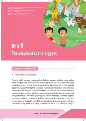 Unit 9 • The elephant is the biggest 77