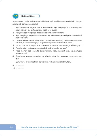 Guru dapat menambahkan pertanyaan refleksi sesuai kebutuhan.