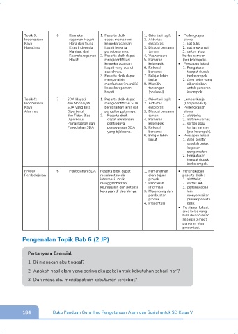 Topik C: 7 SDA Hayati 1. Peserta didik dapat 1. Orientasi topik • Lembar Kerja