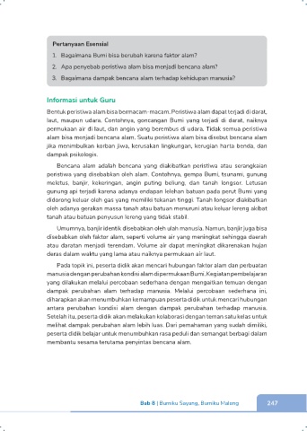 manusia dengan perubahan kondisi alam di permukaan Bumi. Kegiatan pembelajaran