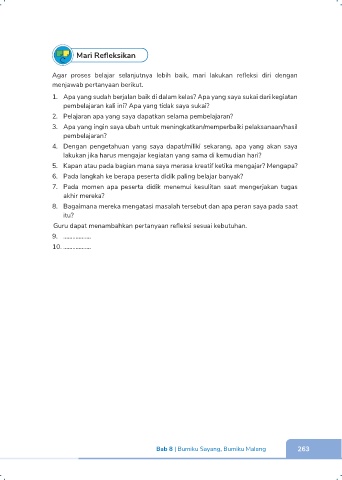 Guru dapat menambahkan pertanyaan refleksi sesuai kebutuhan.