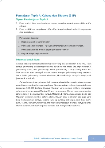 Pengajaran Topik A: Cahaya dan Sifatnya (5 JP)