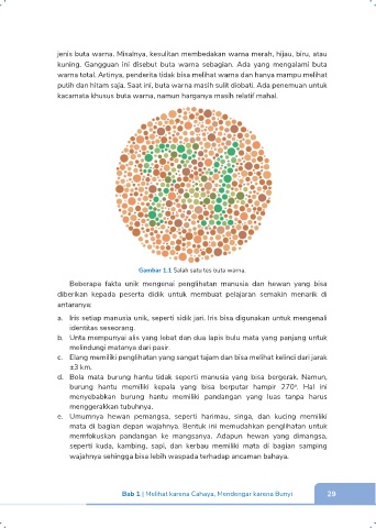 jenis buta warna. Misalnya, kesulitan membedakan warna merah, hijau, biru, atau